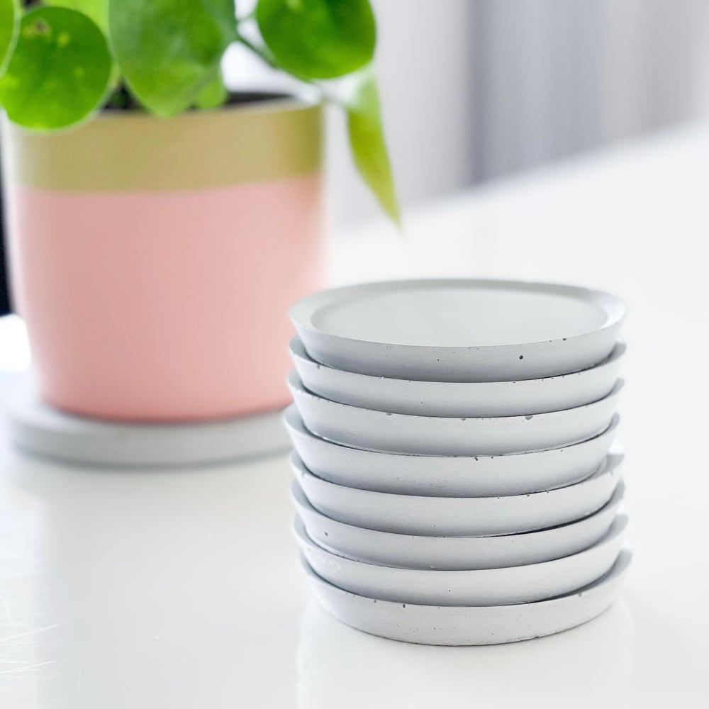 Add character to your home with these handmade solid concrete coasters. Our coasters have been individually hand cast, sanded, sealed and finished with surface protectors underneath to protect your table tops.